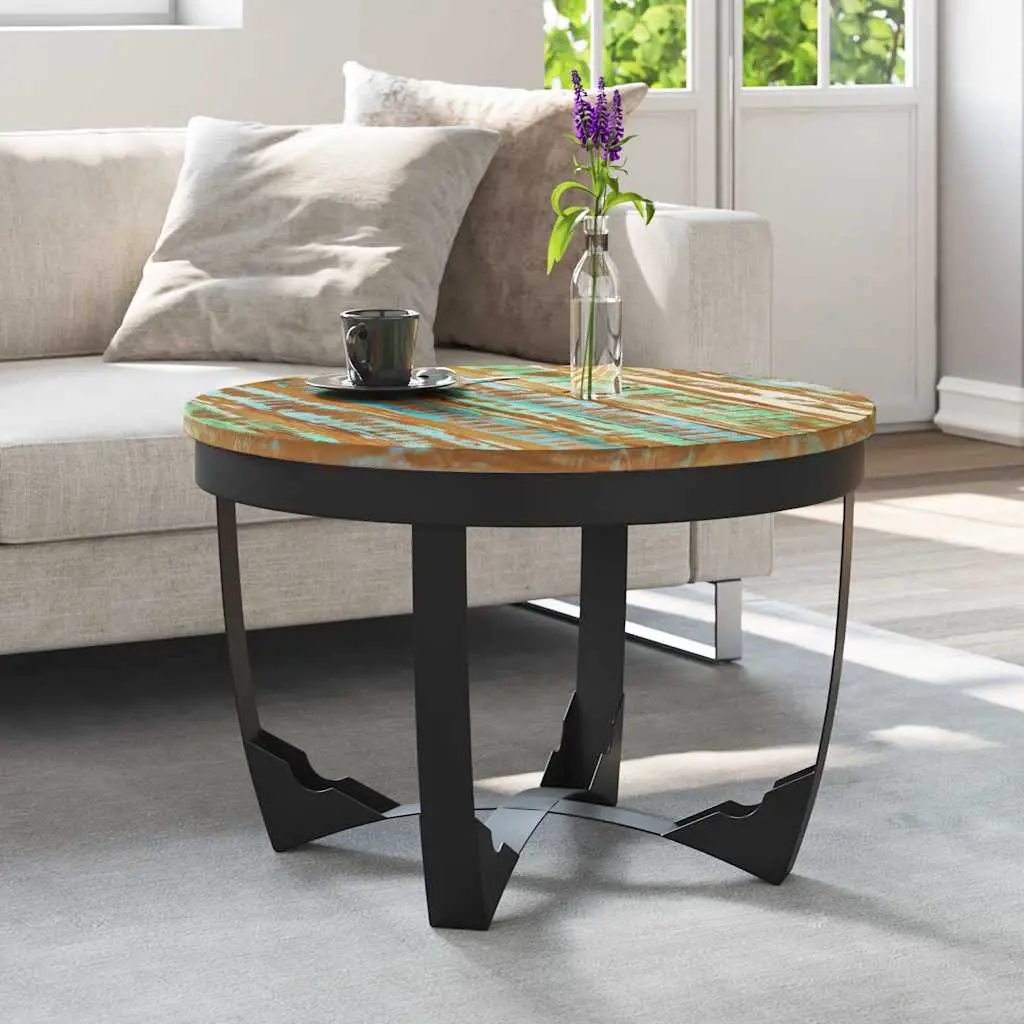 This round coffee table, with its vintage industrial vibe, brings a unique touch to your living space while being completely functional. Made from solid reclaimed wood, each piece is unique, sporting different patterns and textures, making it a standout piece that fits in anywhere, whether it’s your living room, home office, or hallway.